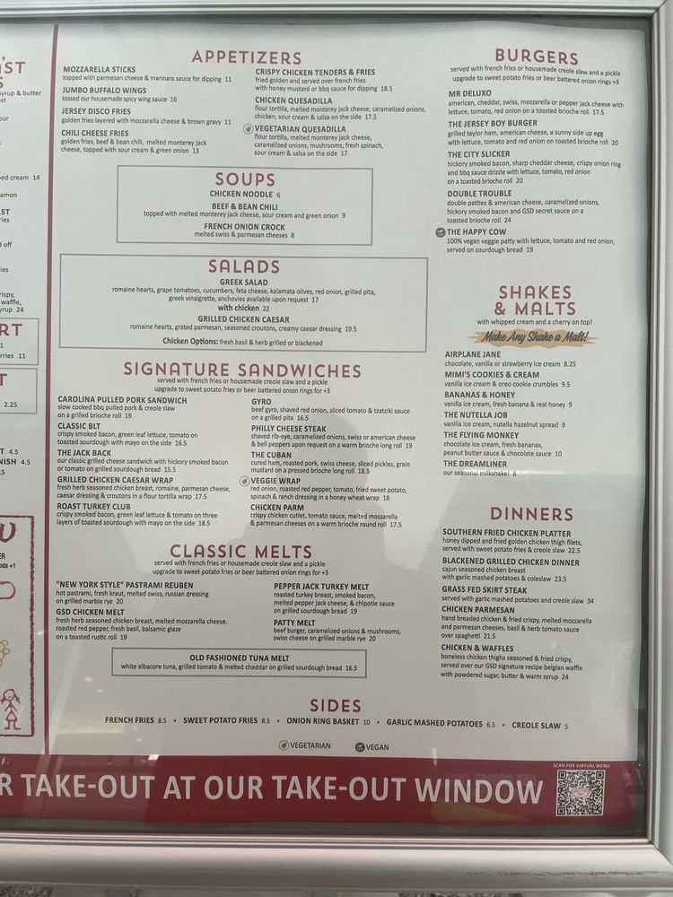 Located in Terminal C of Newark Airport, Garden State Diner offers a convenient and delicious dining experience for travelers. With a wide array of options including vegan and vegetarian choices, this diner caters to all dietary needs. The menu features hearty Big Apps like Chili Nachos Americano and Meatballs, comforting soups like French Onion and Uncle Mike's Famous Beef and Bean Chili, and fresh salads like Greek and Buffalo Chicken. Customers rave about the quality of food and reasonable prices, making Garden State Diner a standout choice in airport dining. The quick service and friendly staff add to the overall positive experience. Don't miss out on this gem for a satisfying meal before or during your travels.